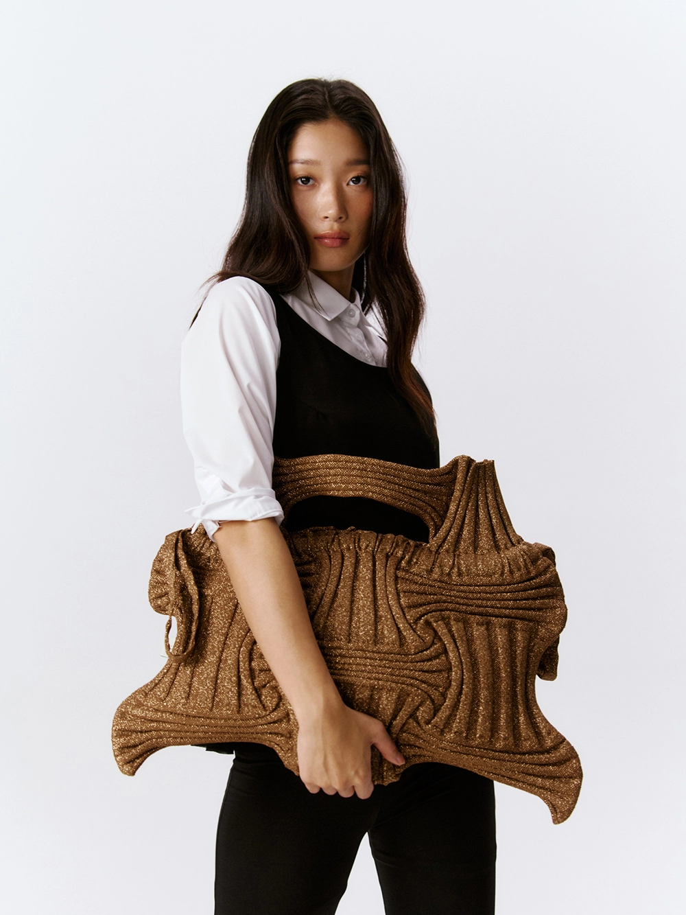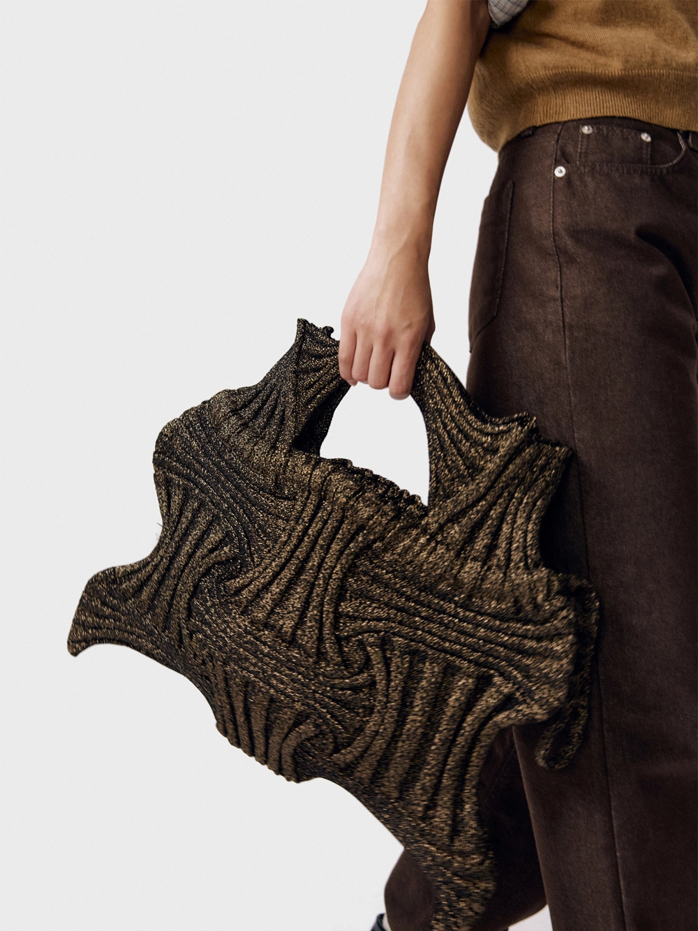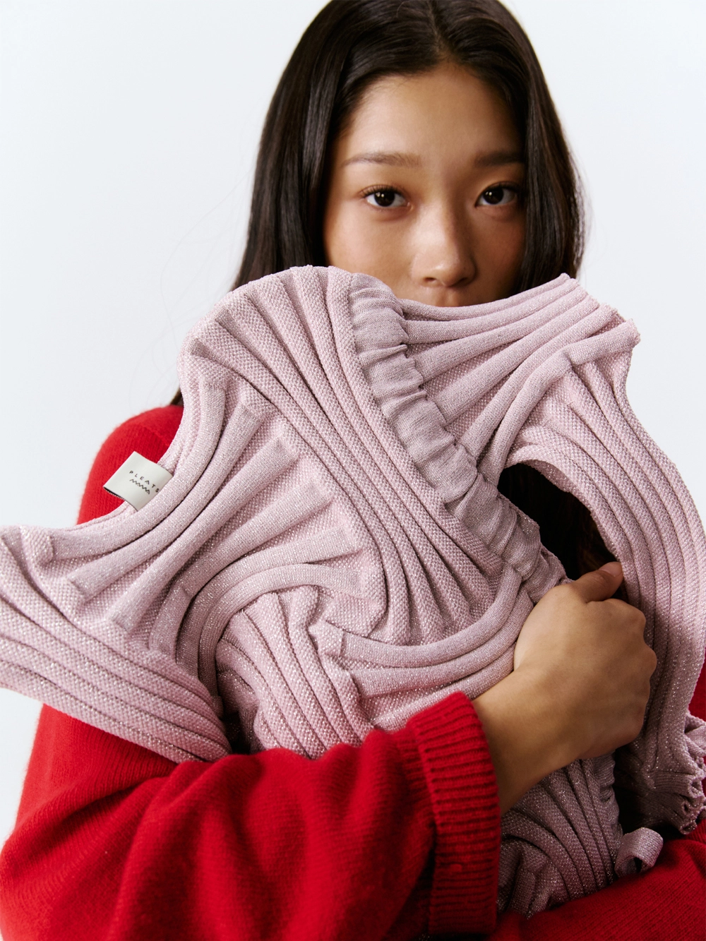 靈感來自品牌標誌性的蝴蝶結百摺設計,採用91%回收聚酯纖維和9%回收彈性纖維混紡材質,兼具環保與輕盈耐用。