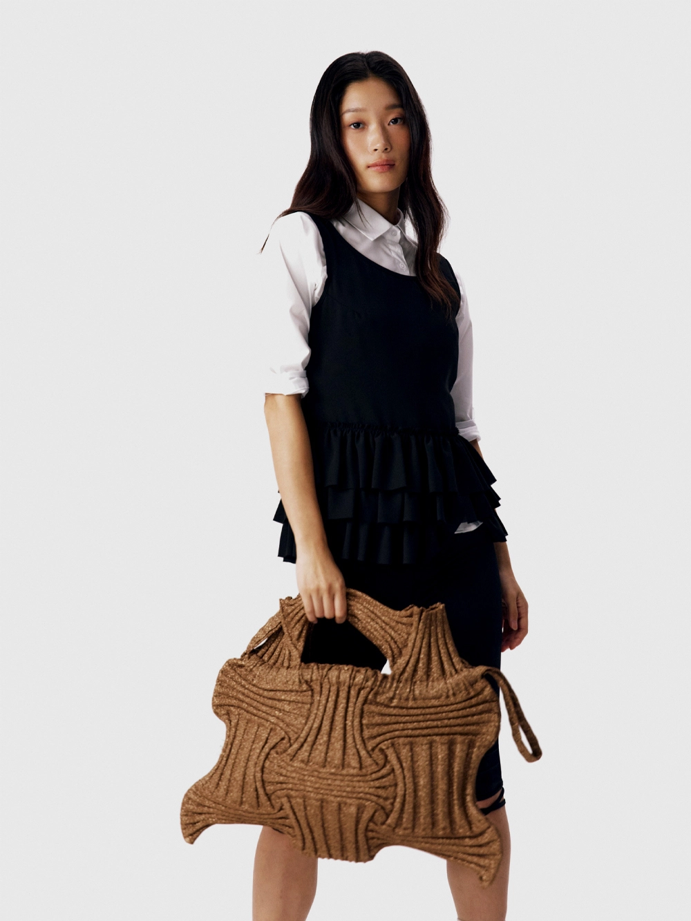針織包面有彈性,可隨裝物自然伸展,兼顧實用與時尚外觀。